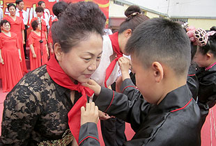 活動精彩不斷,在讓人傾心傾情的英文歌曲聯(lián)唱結(jié)束之后,幾位貧困兒童走上舞臺,接受綠之韻叔叔阿姨們的現(xiàn)場捐贈,并為叔叔阿姨們系上象征少先隊員崇高標志的鮮艷紅領(lǐng)巾。臺下的居民朋友們被此場景感動著、震撼著,熱烈掌聲持續(xù)不斷。參加此次活動的綠之韻愛心經(jīng)銷商們表示,今后還將更多的投身到公益慈善事業(yè)當中,幫助更多需要幫助的人!