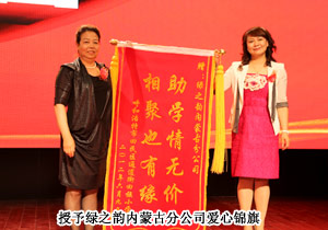 一直以來,綠之韻內(nèi)蒙古的愛心經(jīng)銷商們總是活躍在各項(xiàng)公益慈善中,將回饋社會、撒播愛心作為永恒不變的主題。慶典現(xiàn)場,王連坤、郝建兵、張聞英、張聞華、張弘菲、劉美成、周淑梅、大高娃、閆素琴、喬桂英、丁文慧、秦慧、黃麗、楊玉蓮14名愛心經(jīng)銷商為呼和浩特市回民區(qū)通道街小學(xué)捐贈善款兩萬元,為孩子們建立流動圖書館,用愛托起孩子們茁壯成長的藍(lán)天。副總經(jīng)理何健為這14名愛心代表頒發(fā)了“2012年度綠之韻愛心慈善大使捐款榮譽(yù)證書”,可愛的孩子們也送上了精心準(zhǔn)備的詩歌朗誦和舞蹈表演。愛心代表王連坤表示:很高興能為這次助學(xué)活動盡一份力,同時也希望更多的人加入到慈善事業(yè)中,將承載著愛心的“接力棒”永遠(yuǎn)傳遞下去。