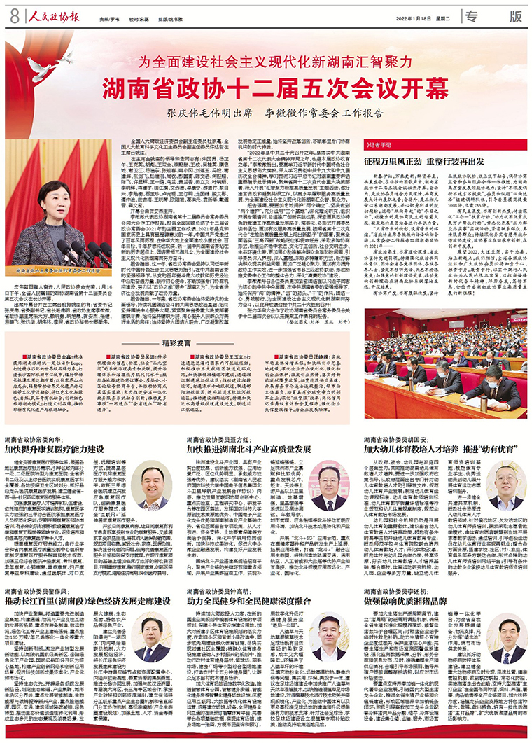 2022年1月16-19日,中國人民政治協(xié)商會議湖南省第十二屆委員會第五次會議在省人民會堂開幕。以習(xí)近平新時代中國特色社會主義思想為指引,全面落實“三高四新”戰(zhàn)略定位和使命任務(wù),湖南省政協(xié)委員、綠之韻集團董事長胡國安與來自全省各族各界的省政協(xié)委員齊聚會場,積極履行政治協(xié)商、民主監(jiān)督、參政議政職能,為全面建設(shè)社會主義現(xiàn)代化新湖南盡政協(xié)之責(zé)、展政協(xié)之長、傾政協(xié)之力。