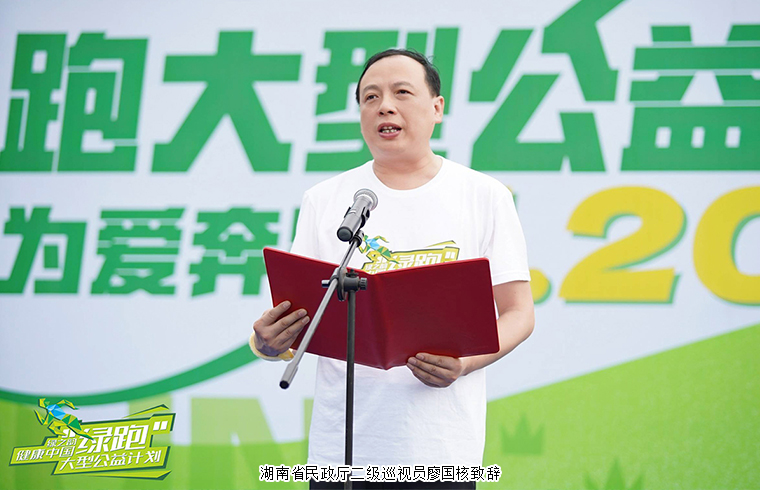 啟動(dòng)儀式上,湖南省民政廳二級(jí)巡視員廖國(guó)核致辭。他表示,綠跑活動(dòng)旨在通過(guò)健康跑這種形式,弘揚(yáng)積極向上的“運(yùn)動(dòng)+公益”理念,倡導(dǎo)全民健康生活方式,匯聚傳遞公益正能量,為困境中的同胞圓夢(mèng)。感謝省慈善總會(huì)副會(huì)長(zhǎng)單位綠之韻集團(tuán)一直以來(lái)對(duì)湖南省公益慈善事業(yè)的關(guān)心和支持,這充分體現(xiàn)了綠之韻集團(tuán)優(yōu)秀企業(yè)文化和社會(huì)責(zé)任擔(dān)當(dāng)。這次聯(lián)合綠之韻集團(tuán)共同舉辦綠跑活動(dòng),目的就是激發(fā)向善正能量,凝聚社會(huì)公益心,讓愛的聲音傳播的更遠(yuǎn)更響亮,為中國(guó)式現(xiàn)代化新湖南建設(shè)貢獻(xiàn)力量。