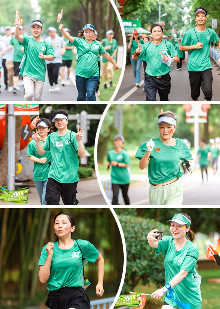 本次活動(dòng)還設(shè)置了以綠之韻“五五規(guī)劃”為主題的歷程打卡點(diǎn)。沿洲賽道以源啟、蓄勢(shì)、立名、勃發(fā)、致遠(yuǎn)五個(gè)歷程設(shè)置打卡點(diǎn),搭配賽道上的腳印地貼。參賽選手沿賽道奔跑,一起共同回顧綠之韻20年的發(fā)展歷程?;貞洉?huì)發(fā)光,那一定是時(shí)光留給綠之韻人的璀璨足跡。