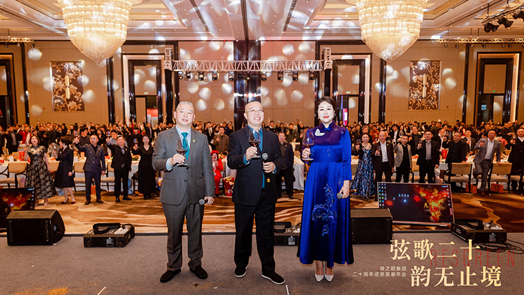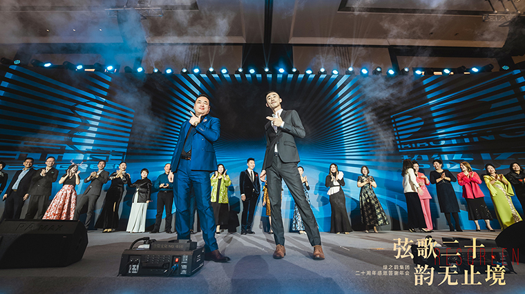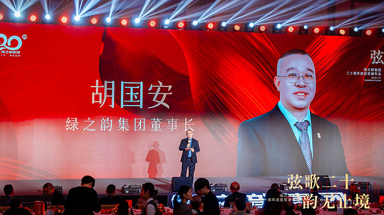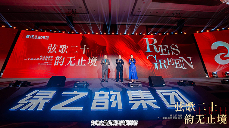 在全場最為熱烈的掌聲中,胡國安董事長講話。感謝大家能夠來到綠之韻集團(tuán)20周年感恩答謝年會現(xiàn)場,共同分享喜悅、見證美好。感謝國家和這個時代,祖國的改革開放,世界的交流融合,科技的日新月異,是綠之韻可以獲得長足發(fā)展的根本原因。感謝綠之韻的員工和事業(yè)伙伴,從事業(yè)初創(chuàng)到穩(wěn)健發(fā)展,是一路走來的堅守和共同成長,才有綠之韻現(xiàn)在的模樣。感謝父母,他們擁有著善良、樸實、誠懇、大方、仁義、謙卑、互助等中華民族精神美德,我從我父母身上得以傳承,并在日后的事業(yè)中不斷轉(zhuǎn)化為我前行的動力。企業(yè)小的時候是自己的,做到一定大的時候就是國家的、是社會的。二十年來,綠之韻積極承擔(dān)企業(yè)公民責(zé)任,捐建11所希望學(xué)校,踴躍參與了100多項社會公益項目,累計捐款捐物達(dá)8400多萬元。剛剛,我參加了湖南省政府“迎新春送溫暖”活動,捐贈100萬元慰問困難群眾。今天在綠之韻集團(tuán)二十周年慶典的現(xiàn)場,我們將再次向湖南省長沙市光彩事業(yè)基金會捐贈100萬元,用于鄉(xiāng)村振興、幫扶濟(jì)困等光彩事業(yè)。二十及冠,大道其行。下一個20年,綠之韻將堅持與祖國同行,與時代同行,持正念,行正道,得正果。在綠之韻二十周年之際,我們也有幸請到了中國著名詞曲家、音樂人、中國音樂家協(xié)會副主席何沐陽先生特別創(chuàng)作了20周年紀(jì)念曲《愿世間所有的美好如約而至》。最后,借用這首旋律優(yōu)美、意境深遠(yuǎn)的歌曲,祝愿我們綠之韻20周年生日快樂,祝?,F(xiàn)場的各位領(lǐng)導(dǎo)嘉賓、全體綠之韻人所有的美好如約而至、身體健康、闔家歡樂、龍年大吉!