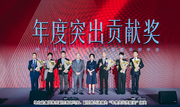 二十載風(fēng)雨歲月,一片赤誠;無數(shù)個日夜登攀,一腔熱血,他們是勇敢的攀登者。綠之韻碧波庭、綠之韻幸福國際、綠之韻微看、綠之韻低碳、綠之韻數(shù)字化健康科技、綠之韻依阿妹等獲得市場“年度突出貢獻(xiàn)獎”。綠之韻集團(tuán)常務(wù)副總裁胡均安、副總裁劉淑娟上臺為榮耀獲得者頒獎。