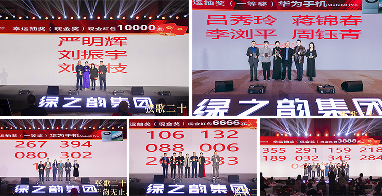 夜幕四合,繁華熱鬧的宴會現(xiàn)場,燈火輝煌,霓虹搖曳、璀璨奪目。“弦歌二十 韻無止境”——綠之韻集團(tuán)二十周年主題晚宴優(yōu)雅開啟?,F(xiàn)場不僅有兼具視聽享受的大片、巧思創(chuàng)意的歌舞大秀,更有驚喜連連的抽獎環(huán)節(jié)。歡聲笑語充斥著整個會場,綠之韻人在觥籌交錯中敞開心扉回首過往、展望未來,一幅幅其樂融融、談笑風(fēng)生的畫面匯聚成今夜最靚麗的美麗畫卷。