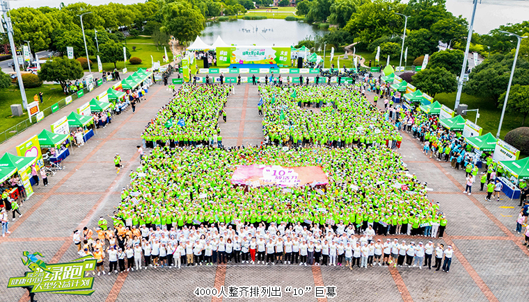活動現(xiàn)場,4000多名綠跑選手在橘子洲噴泉廣場有序排列出“10”字巨幕造型,伴隨著歡呼聲和響徹云霄的“‘10’放活力,‘益’起上場”,航拍鏡頭下宛如躍動的綠色脈搏,致敬著十年公益長河中的每一簇浪花。這是獨(dú)屬綠跑的浪漫和恢弘,激勵我們涌愛向前,“益”起奔赴美好。
