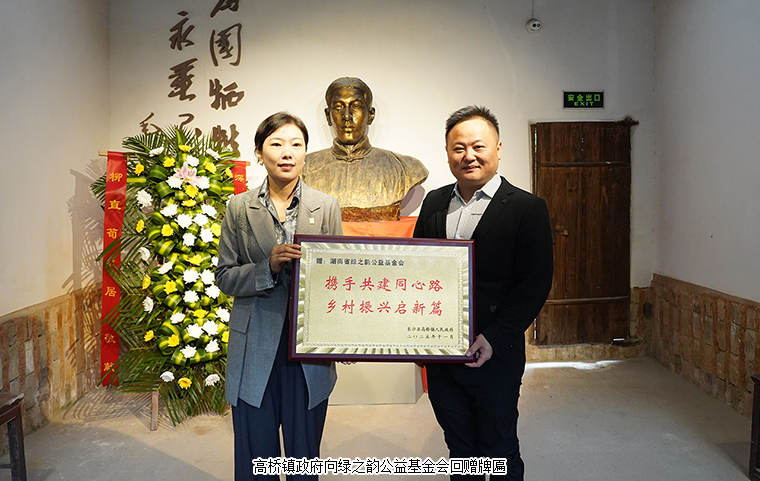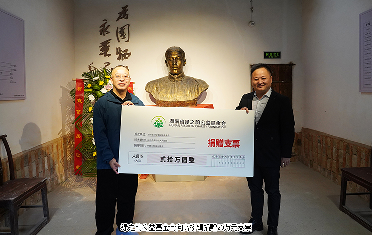 綠之韻公益基金會向長沙縣高橋鎮(zhèn)政府捐贈20萬元用于鄉(xiāng)村振興產(chǎn)業(yè)建設(shè),助力村鎮(zhèn)集體經(jīng)濟增長、改善鄉(xiāng)民生產(chǎn)生活環(huán)境,也將專項支持本地紅色文化的保護與傳承。